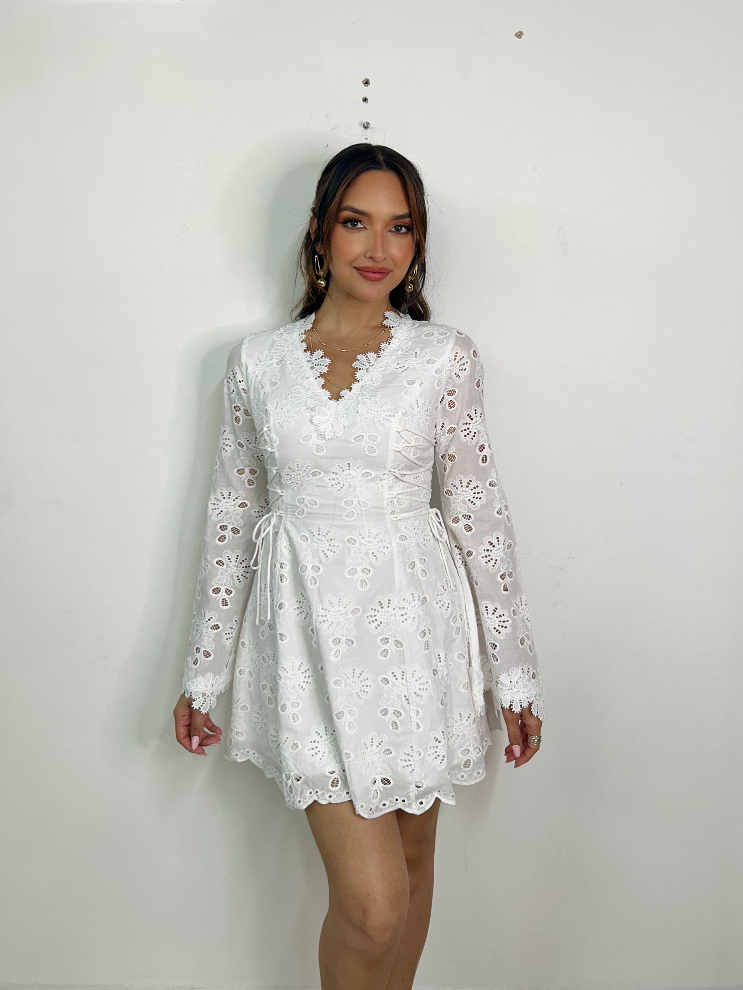 Lace Trim Eyelet Mini Dress