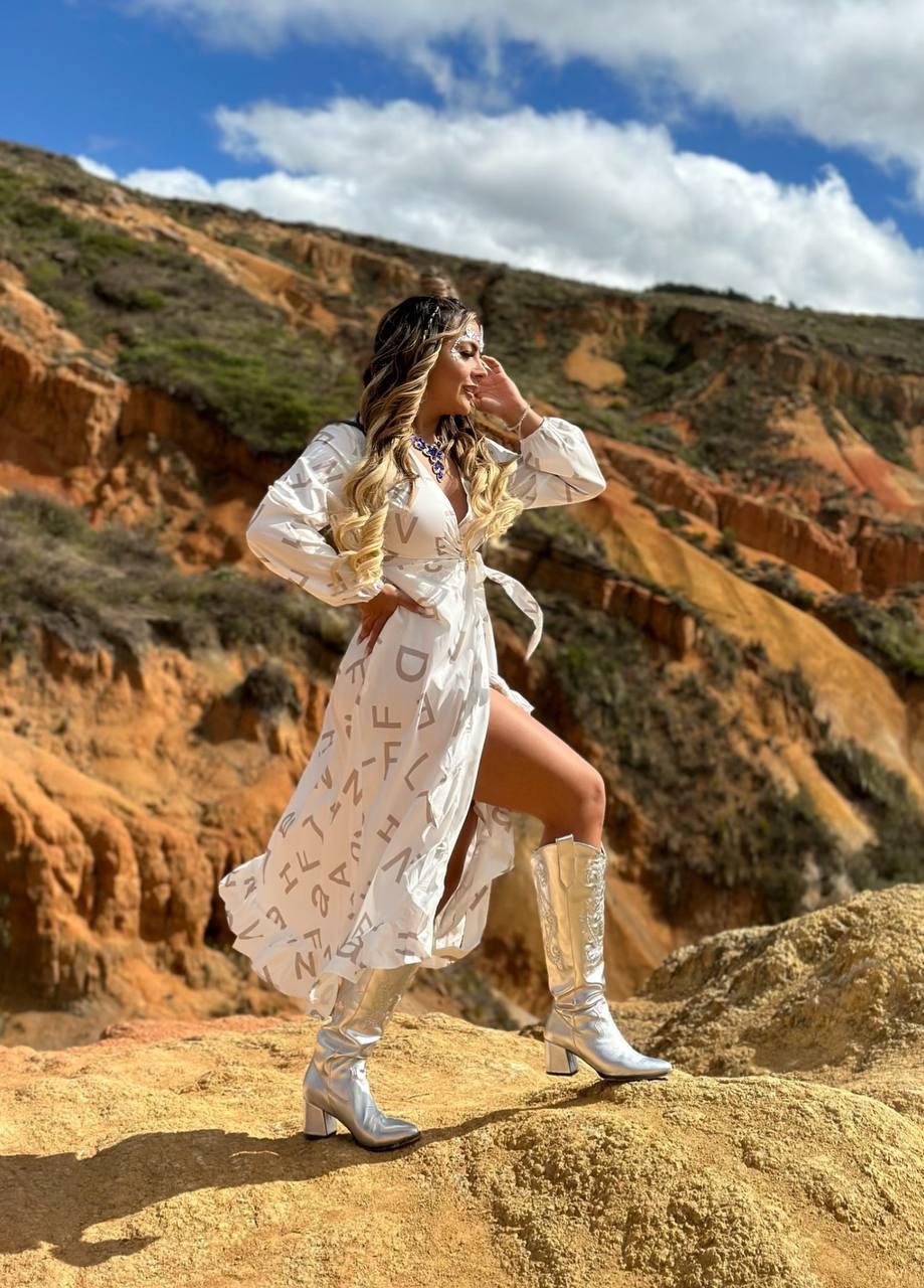 Mixed Letters White Maxi Dress