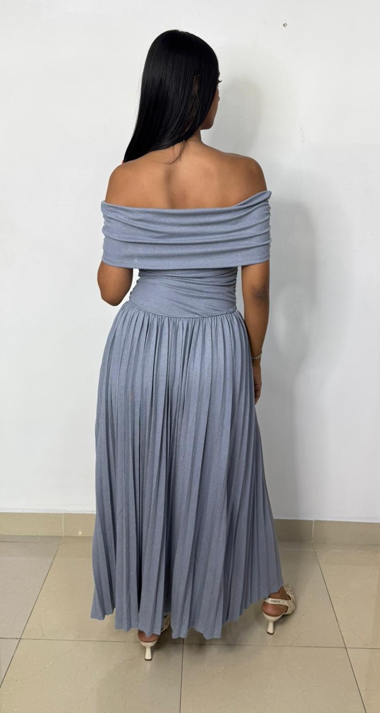 Soft Blue Off Shoulder Maxi Dress with tablets