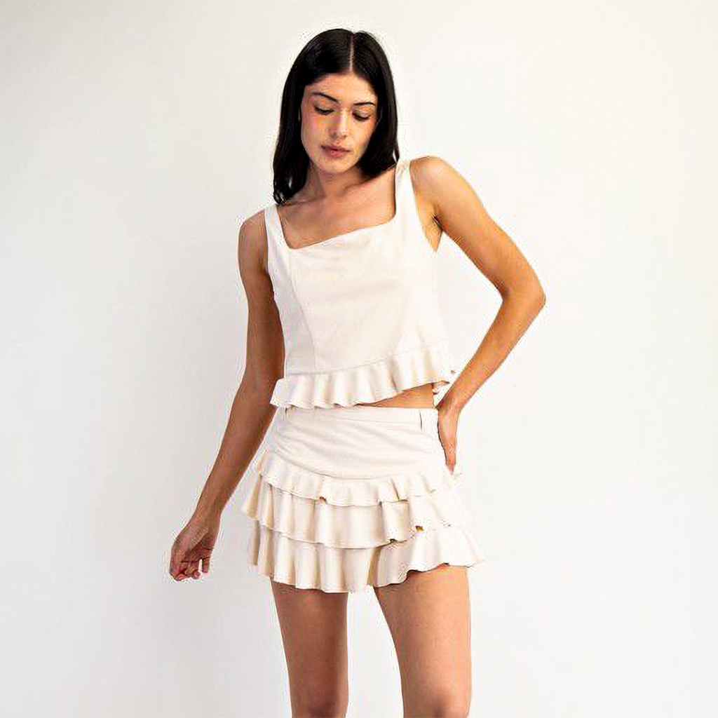 Tiered Frill Suede Mini Skirt